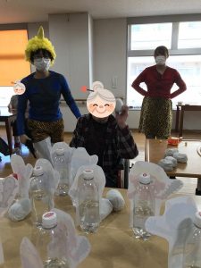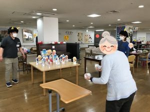 ②ペットボトルの鬼に玉を投げて倒す的当てゲーム